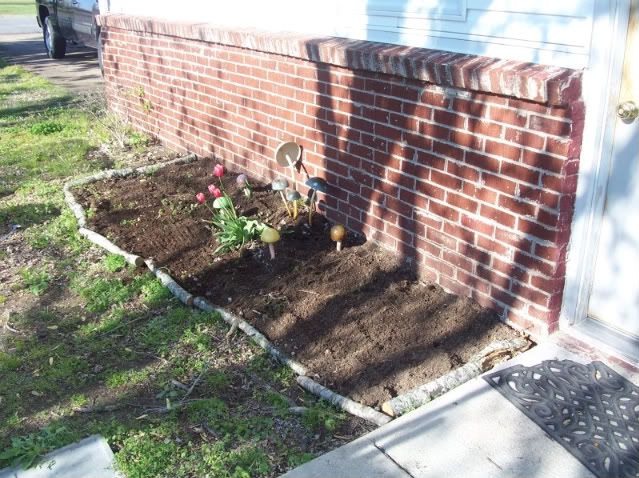 We are still recovering from the ice storm... I cant believe there are branches everywhere still... I finally decided to clean the sticks out and try to make a little flower bed :)